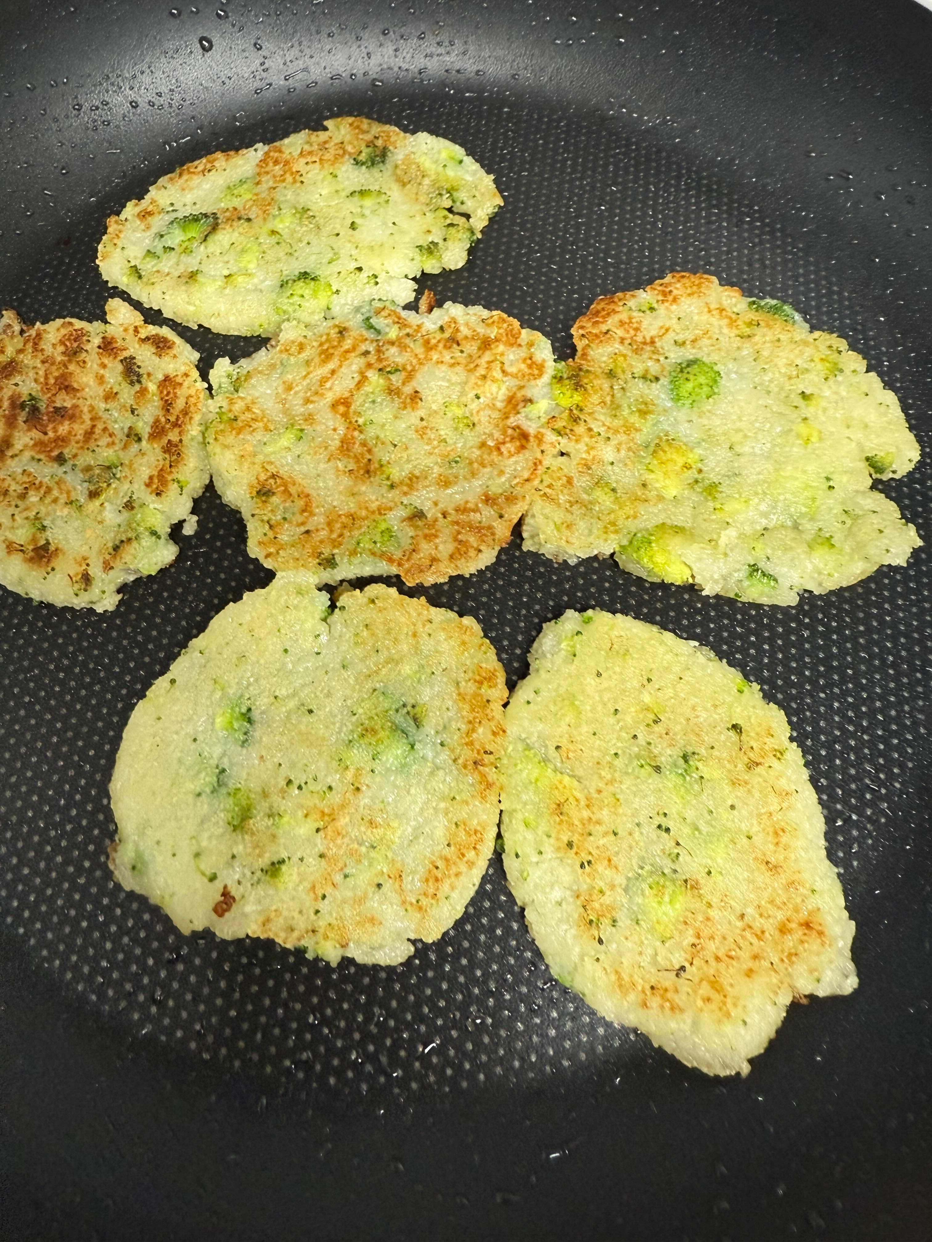 6. 노릇노릇하게 구워진 브로콜리 감자전을 아기가 먹기 좋은 크기로